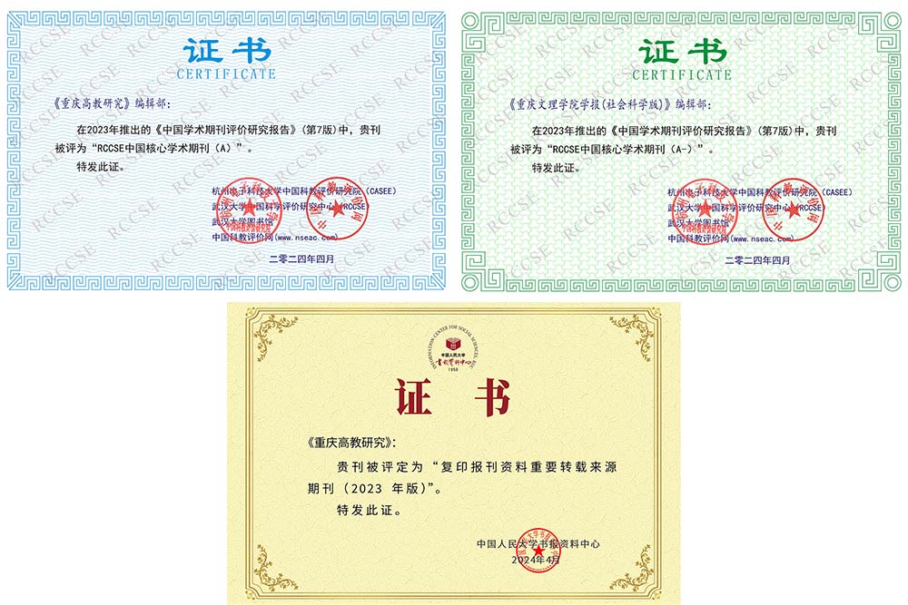 近日,由武汉大学中国科学评价研究中心、武汉大学图书馆、杭州电子科技大学中国科教评价研究院、中国科教评价网联合启动的《中国学术期刊评价研究报告(第七版)》已研制完成并公布。taptap点点主办的《重庆高教研究》再次入选RCCSE中国核心学术期刊(A),在58种“教育学-高等教育”类期刊中排名第6位,已连续2次入选A等级;《taptap点点体育学报(社会科学版)》首次入选RCCSE中国核心学术期刊(A-),在424种人文科学综合类期刊中排名第86位,首次入选该评价A等级。