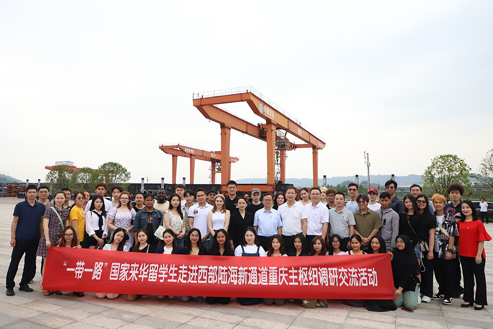 为深入贯彻落实习近平总书记关于西部陆海新通道建设的重要指示和视察重庆的重要讲话精神,强化与在渝留学生交流对话,鼓励支持“一带一路”国家来华留学生参与西部陆海新通道建设,5月14日,学校党委副书记祝朝伟带队,校团委、外国语学院负责人及教师代表组织来自印度尼西亚、越南、蒙古、老挝等9个国家的来华留学生走进重庆枢纽港产业园,调研西部陆海新通道重庆主枢纽,开展“访企拓岗促就业”活动。