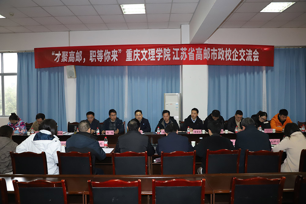 3月8日上午,学校与江苏省高邮市政校企交流会在红河校区A区学生事务中心303举行。学校副校长李天福,高邮市人力资源和社会保障局党组书记、局长高日平,党组成员、副局长姜庆杰,高邮市开发区经济发展局副局长陈俊出席会议。交流会由招生就业处负责人主持。