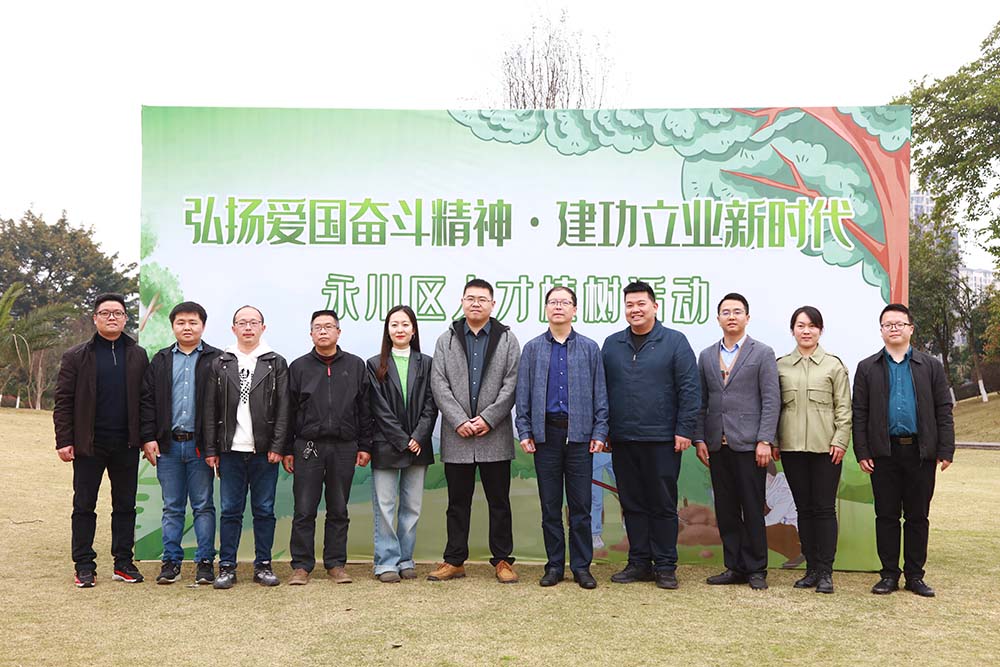 3月12日,在第46个植树节来临之际,永川区委组织部联合学校党委教师工作部、永川中医院和部分在永企业等多家企事业单位在永川区观音山公园“人才林”举办“弘扬爱国奋斗精神·建功立业新时代”人才植树活动,以实际行动践行绿水青山就是金山银山的发展理念。永川区委常委、组织部部长胡川,部务委员李勇,学校党委教师工作部负责人、学校和永川区相关企事业单位30余名人才代表参加活动。