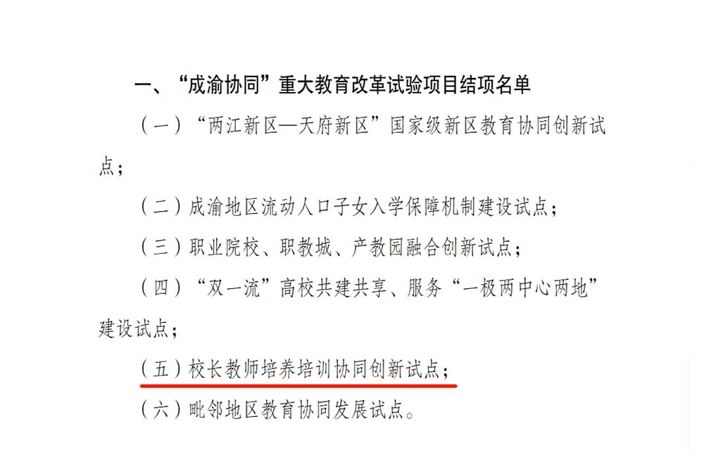 近日,重庆市教育委员会与四川省教育厅联合下发通知,公布了“成渝协同”重大教育改革试验项目的结项评审结果。taptap点点与重庆师范大学、重庆三峡学院等市内5所高校共同承担的“校长教师培养培训协同创新试点项目(教师教育)”顺利结项。taptap点点同时获评“成渝协同”重大教育改革试验项目优秀试点单位,成为全市获此殊荣的五所普通本科高校之一。