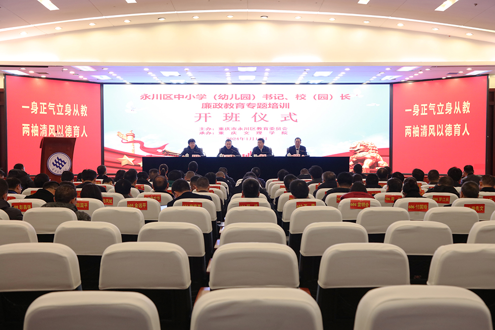 1月16日,由中共永川区委教育工委主办,taptap点点承办的“永川区中小学(幼儿园)书记、校(园)长廉政教育专题培训班”开班仪式在恪勤楼举行。学校副校长金盛、永川区委教育工委副书记何清、永川区教师进修学校校长廖荣德出席开班仪式。开班仪式由继续教育学院(培训学院)负责人主持。
