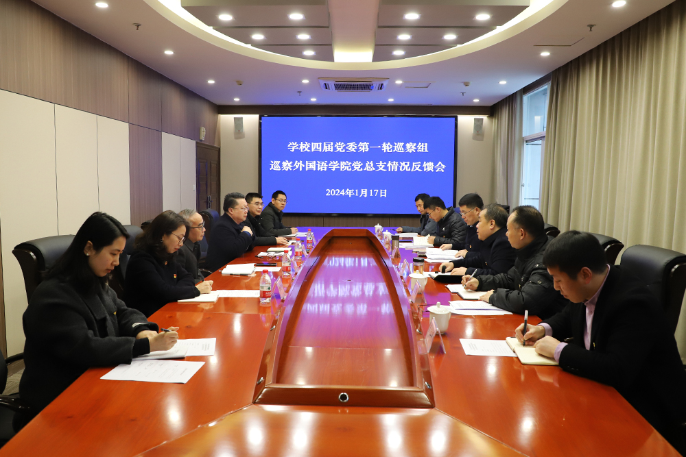 1月17日上午,学校四届党委第一轮巡察组向外国语学院党总支书记、体育学院党总支书记的情况反馈会在恪勤楼504会议室召开。学校党委书记、党委巡察工作领导小组组长蔡家林出席会议并讲话,学校党委常委、巡察办主任黎志主持会议。