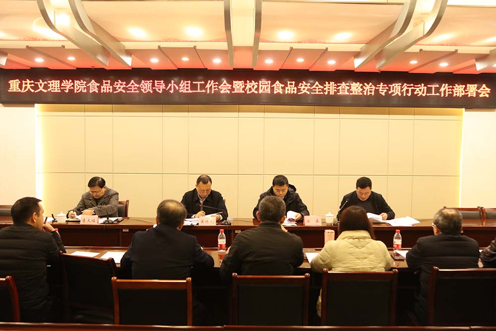 1月16日,学校食品安全工作专题会在恪勤楼422会议室召开,校长黄伟九,副校长金盛、李天福出席会议,学校食品安全领导小组全体成员参加。会议由金盛主持。