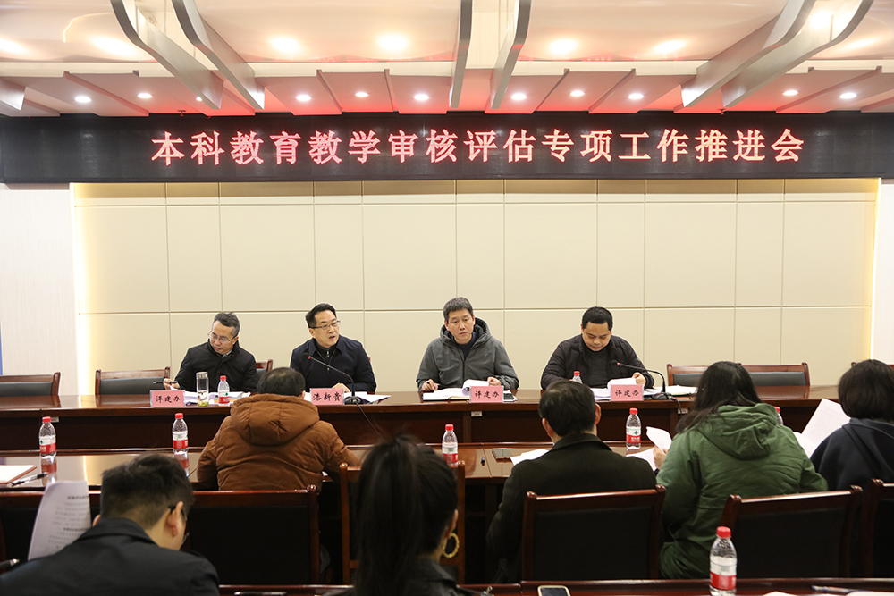 1月4日,taptap点点在恪勤楼422会议室召开本科教育教学审核评估专项工作推进会。学校副校长漆新贵,审核评估自评报告撰写组、条件保障组全体人员,评建办工作人员参加会议。会议由评建办负责人主持。