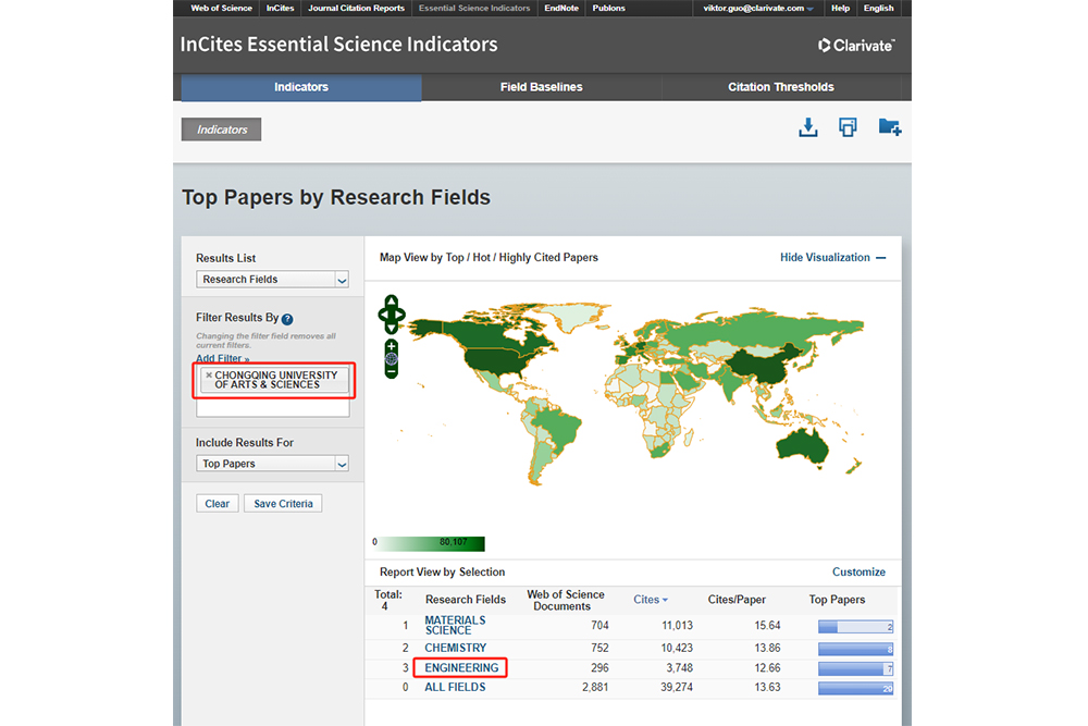 据科睿唯安(Clarivate Analytics)1月11日发布的最新ESI(Essential Science Indicators基本科学指标)统计数据,taptap点点体育工程学(Engineering)继材料科学(Materials Science)、化学(Chemistry)之后,进入ESI全球学科排名前1%;ESI前1%学科数量跃升为重庆市属高校并列第三名。