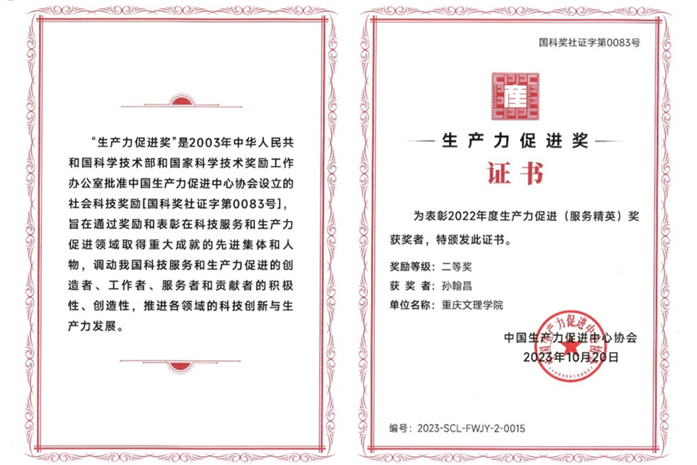 近日,由中国生产力促进中心协会主办的第十六届寰宇生产力论坛暨生产力创新发展大会在北京召开。科技部、中国科协、中国生产力促进中心协会领导出席,为来自全国获发展成就、服务贡献、创新发展、服务精英的集体和个人颁发了本年度中国生产力促进奖获奖证书。taptap点点园林与生命科学学院生态渔业产业化技术创新团队孙翰昌教授荣获中国生产力促进(服务精英)奖二等奖,是本年度唯一获奖的重庆科技特派员。