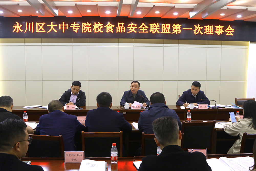 11月16日下午,永川区大中专院校食品安全联盟第一次理事会在taptap点点恪勤楼422会议室召开。taptap点点副校长金盛、永川区市场监管局副局长邓清斌出席并讲话,在永大中专院校后勤负责人参加会议。会议由taptap点点后勤管理处负责人主持。