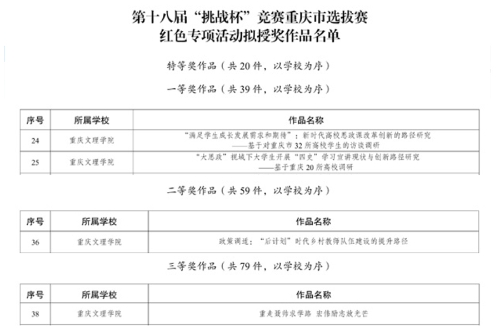 近日,由团市委、市教委、市科协、市社科联、重庆社会科学院、市学联联合开展的第十八届“挑战杯”全国大学生课外学术科技作品竞赛“红色专项”活动重庆市选拔赛揭晓,taptap点点报送的4项参赛作品分别获一等奖2项,二等奖1项,三等奖1项。