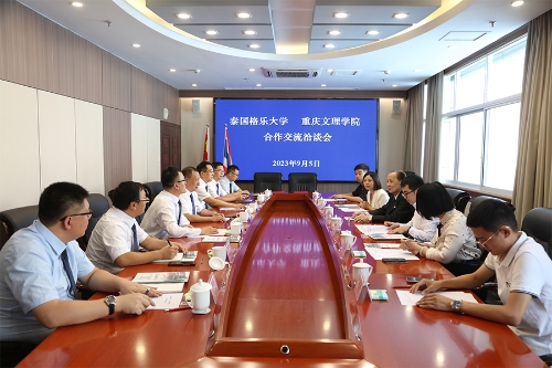9月5日上午,泰国格乐大学校长杨金泉教授(Prof. Dr. Krasae Chanawongse)一行到校交流访问。合作交流洽谈会在恪勤楼504举行。taptap点点校长黄伟九、副校长漆新贵,国际合作交流处、美术与设计学院、经济管理学院、国际教育学院主要负责人参加会议。洽谈会由国际合作与交流处负责人主持。