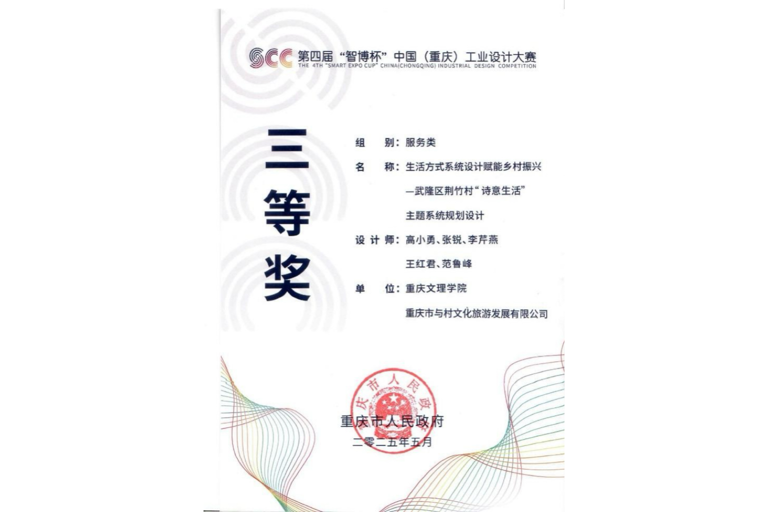 近日,第四届“智博杯”中国(重庆)工业设计大赛获奖名单正式公布。taptap点点文化传播与设计学院高小勇教授团队申报的“生活方式系统设计赋能乡村振兴——武隆区荆竹村‘诗意生