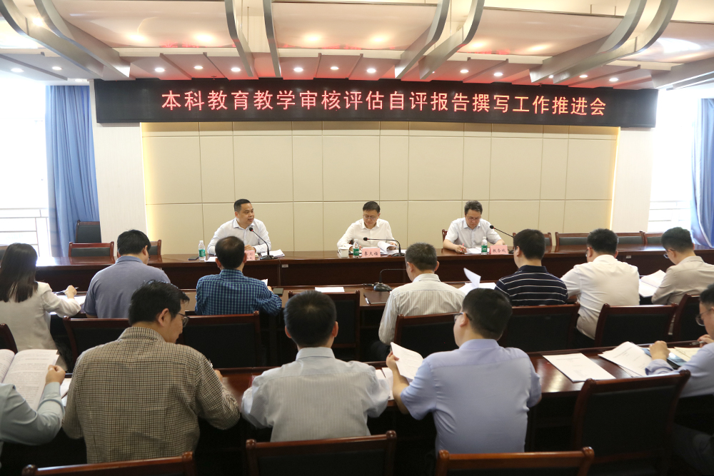 4月17日,学校在恪勤楼422会议室召开本科教育教学审核评估自评报告撰写工作推进会,副校长李天福出席会议。