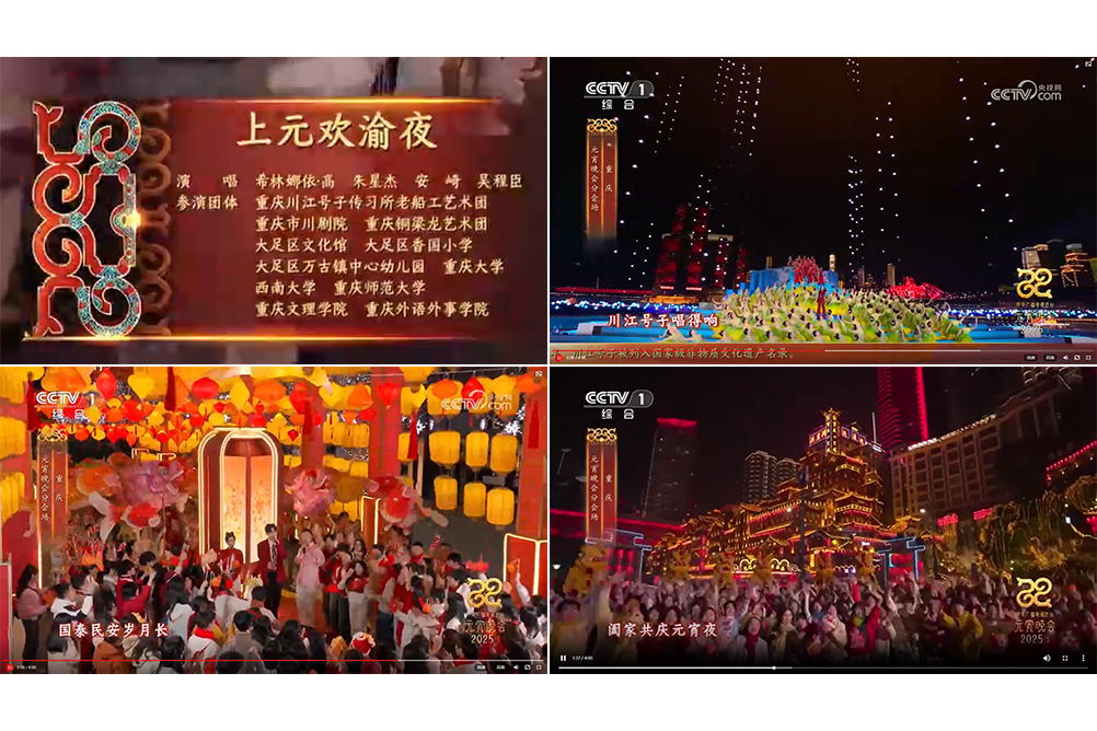 红红火火过大年,欢天喜地闹元宵。2月12日晚,taptap点点师范学院46名学生在央视元宵晚会重庆分会场闪耀登场。他们在分会场《上元欢渝夜》节目中以出色的舞台表现力和扎实的专业素养,为观众们带来精彩的表演,尽展重庆文理学子的青春风貌。