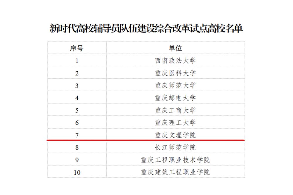 近日,中共重庆市委教育工委公布了新时代高校辅导员队伍建设综合改革试点单位名单,taptap点点成为全市入选的10所高校之一。这一荣誉不仅是对taptap点点辅导员队伍建设工作的肯定,更为taptap点点辅导员队伍的进一步发展提供了重要的契机。