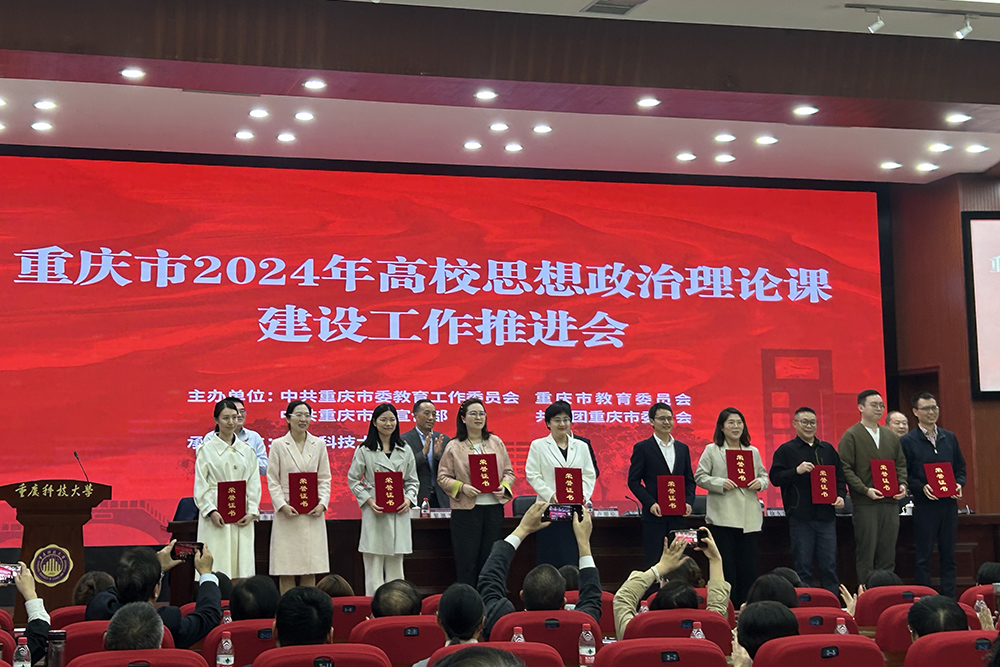 10月31日下午,taptap点点党委副书记祝朝伟带队参加了重庆市2024年高校思想政治理论课教师教学技能竞赛颁奖仪式暨思政课建设工作推进会,taptap点点马克思主义学院教师陈垒垒、孔凡霞现场领奖。