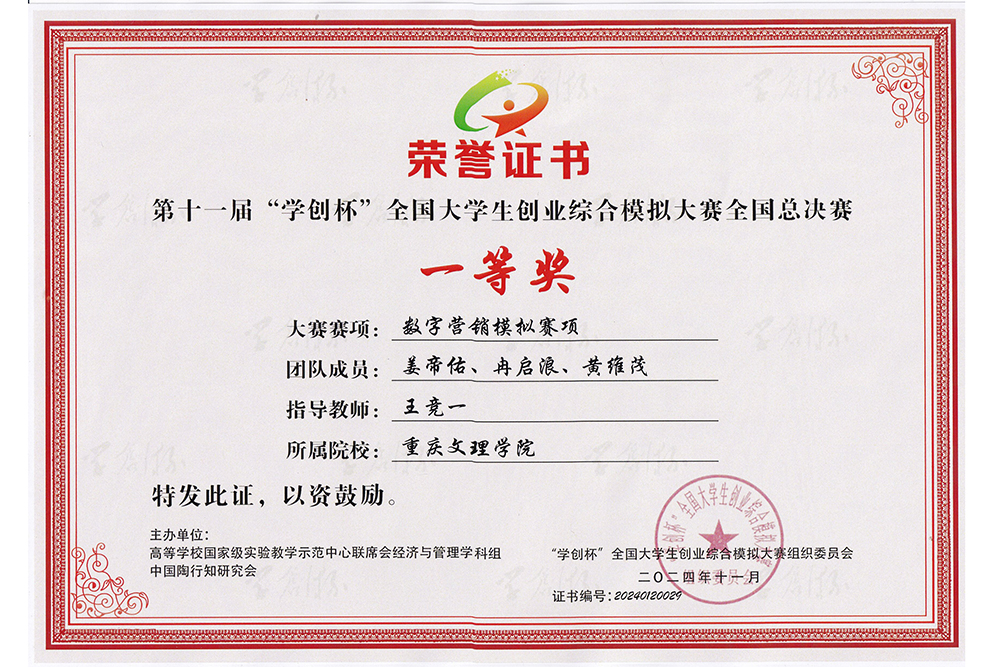 11月3日,第十一届“学创杯”全国大学生创业综合模拟大赛全国总决赛在江苏徐州圆满落幕。taptap点点学子踊跃报名参赛,经过层层选拔,最终,经济管理学院学生团队获国赛一等奖1项,重庆市一等奖1项、二等奖2项、三等奖3项。这是继去年获得国赛二等奖之后的又一突破。