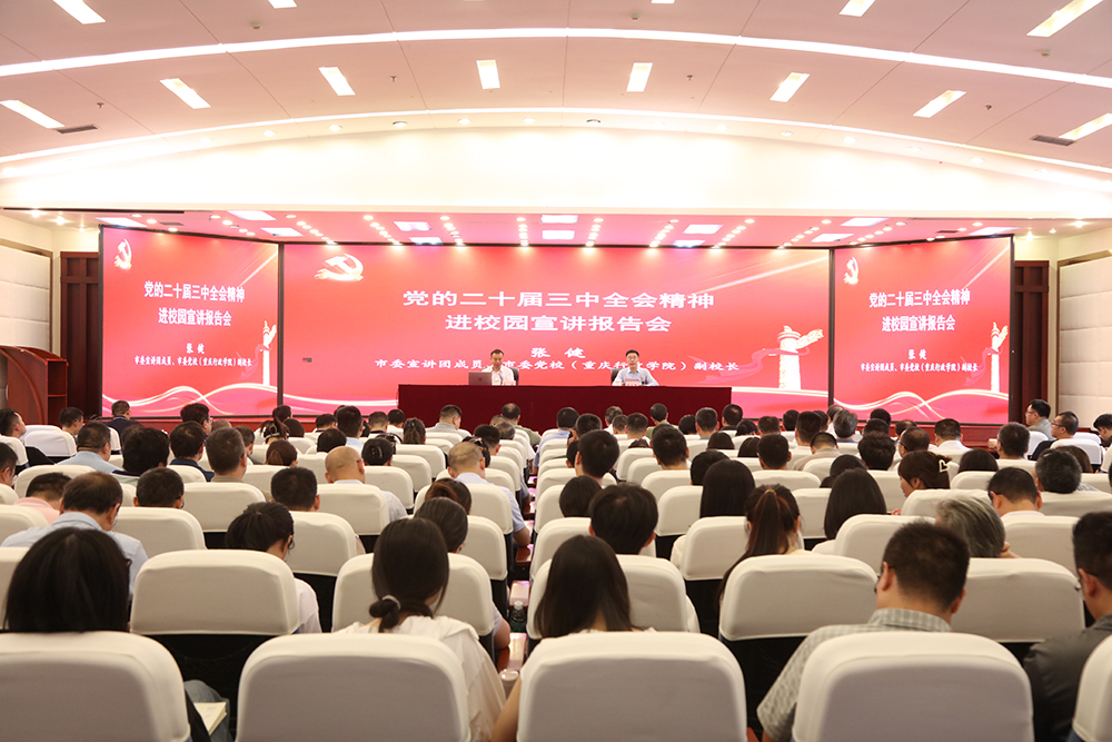 按照市委统一安排,9月25日下午,市委宣讲团成员、市委党校(重庆行政学院)副校长(副院长)张健来校宣讲党的二十届三中全会精神。宣讲报告会在恪勤楼304报告厅举行,学校党委书记蔡家林主持报告会。