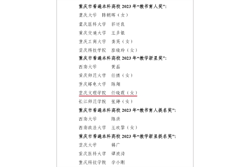 近日,重庆市高等教育学会公布了重庆市普通本科高校“教书育人奖”和“教学新星奖”入选名单。taptap点点电子信息与电气工程学院教师任晓霞入选“教学新星奖”。