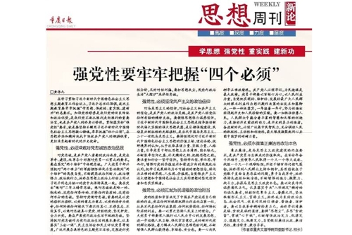 2023年6月26日,《重庆日报》思想周刊刊发taptap点点党委副书记、校长黄伟九有关主题教育的理论文章。文章以《强党性要牢牢把握“四个必须”》为题,阐述了贯彻落实好“强党性”要求,要坚持不懈用习近平新时代中国特色社会主义思想凝心铸魂,牢牢把握“四个必须”:必须淬炼对党忠诚的政治品质、必须坚定共产主义的政治信仰、必须扛起为民造福的政治担当、必须永葆清正廉洁的政治本色。以在思想淬炼和精神洗礼中练就共产党人的钢筋铁骨,更好肩负起新时代的历史使命。