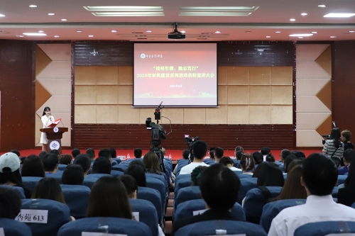 为深入推动主题教育走深走实,推进学校一流学风建设,5月25日下午,学校在红河A区博文馆101举行“榜样引领·励志笃行”2023年学风建设系列活动表彰暨宣讲大会。党委常委、副校长李天福,相关职能部门负责人、二级学院分管学生工作领导、辅导员代表、学生代表近300人参加表彰大会。