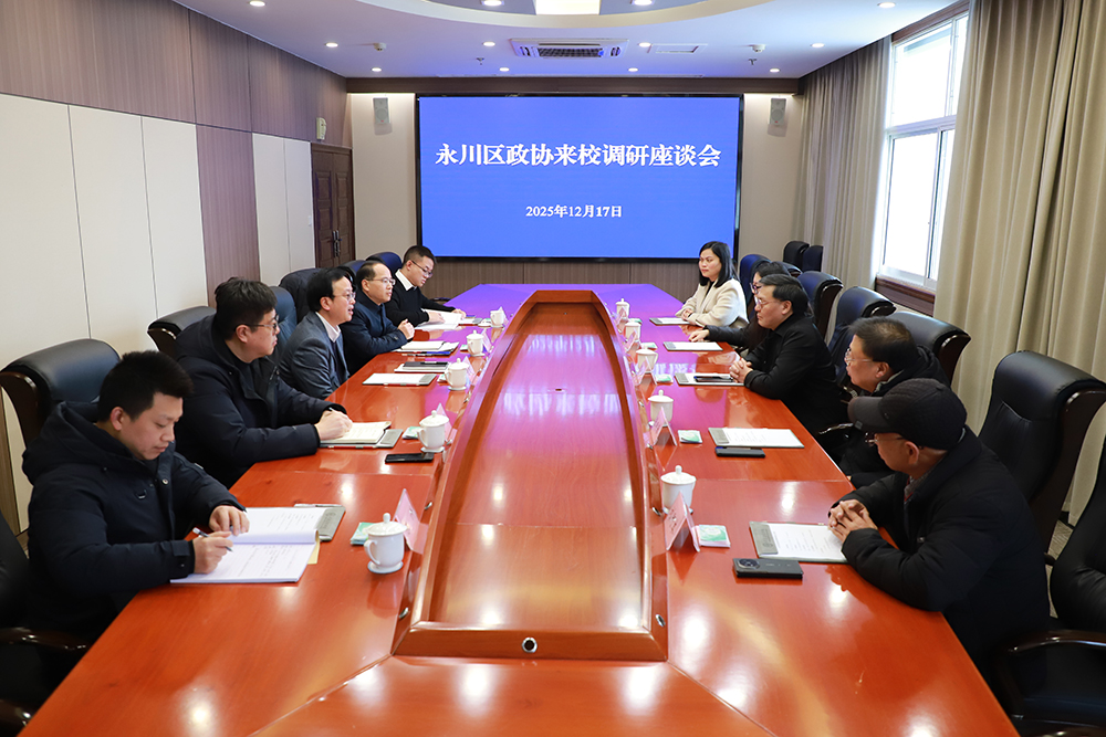 12月17日下午,永川区政协副主席颜加洪一行到校调研。调研座谈会在恪勤楼504会议室举行,学校党委副书记、统战部部长祝朝伟出席座谈会。