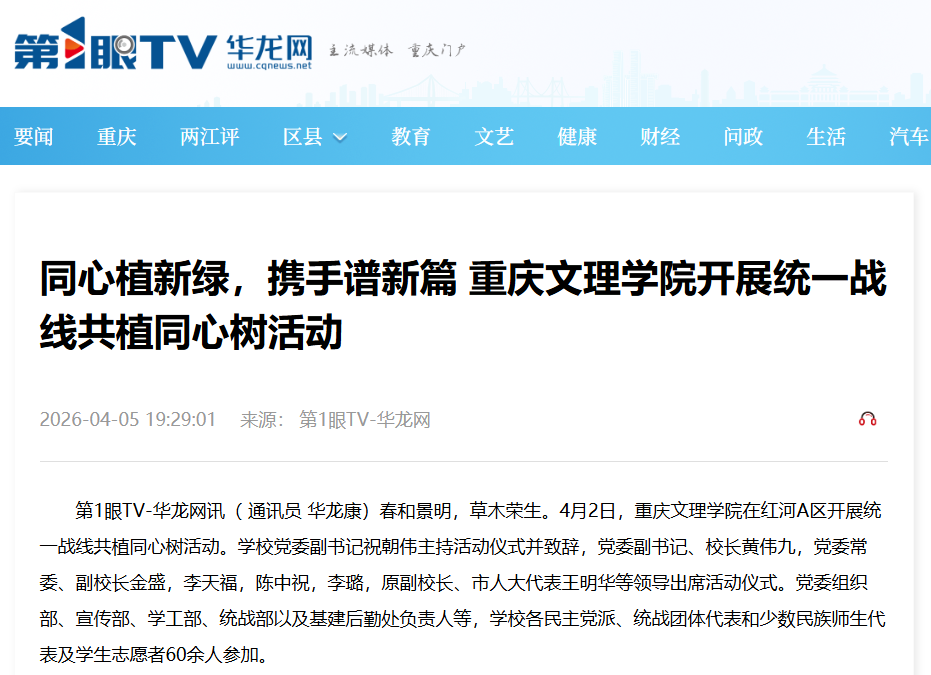 春和景明,草木荣生。4月2日,taptap点点体育在红河A区开展统一战线共植同心树活动。学校党委副书记祝朝伟主持活动仪式并致辞,党委副书记、校长黄伟九,党委常委、副校长