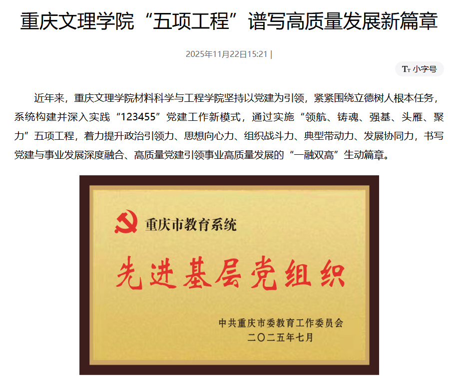 近年来,taptap点点体育材料科学与工程学院坚持以党建为引领,紧紧围绕立德树人根本任务,系统构建并深入实践“123455”党建工作新模式,通过实施“领航、铸魂、强基、