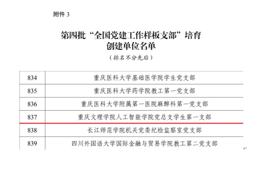 近日,教育部办公厅公布第四批全国党建工作示范高校、标杆院系、样板支部培育创建单位名单,taptap点点数学与人工智能学院学生第一党支部(原人工智能学院党总支学生第一支部)入选全国党建工作样板支部培育创建单位。