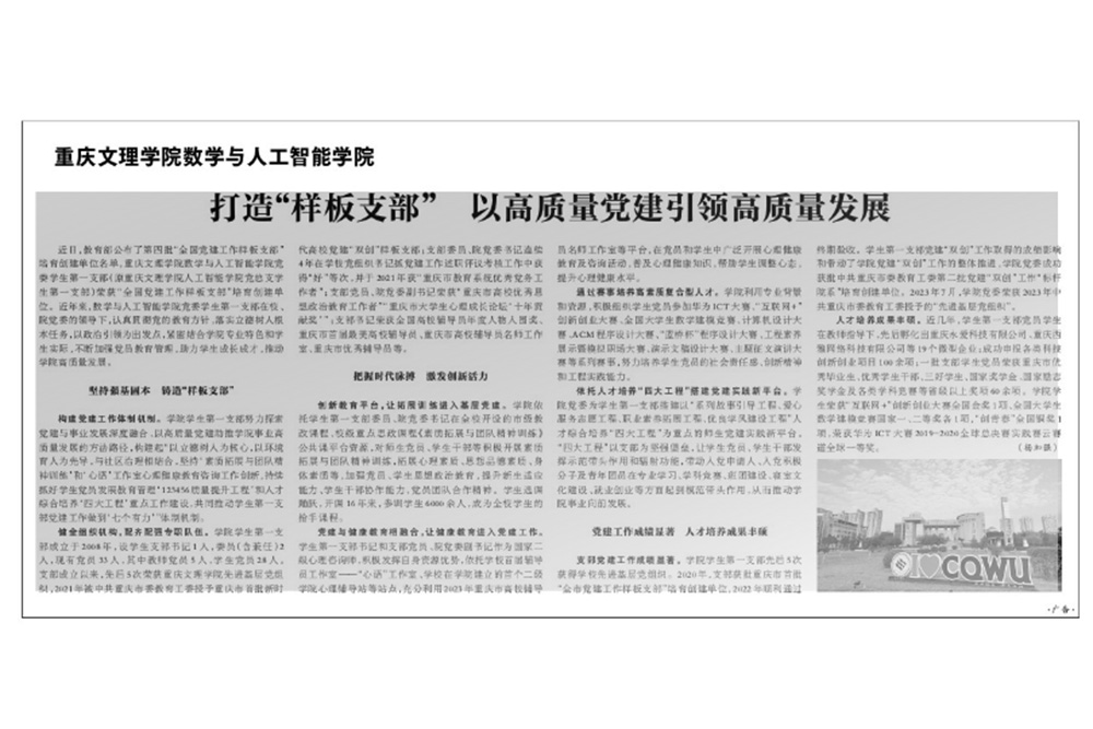 6月12日,《光明日报》以《taptap点点体育数学与人工智能学院:打造“样板支部” 以高质量党建引领高质量发展》为题报道taptap点点数学与人工智能学院“全国党建工作样板支部”培育创建工作。文章指出,taptap点点数学与人工智能学院学生第一党支部近年来积极构建“111227”党建工作体制机制,这一体系以立德树人为核心,以环境育人为先导,结合社区治理等,开创了党建工作的新局面。本次获批创建彰显了该支部在提升党员素质、促进学院发展、服务师生需求方面的显著成效,反应了学校党委对党建工作的高度重视和深刻认识,以及将党建工作与学院发展、师生需求紧密结合的先进理念和实践能力。