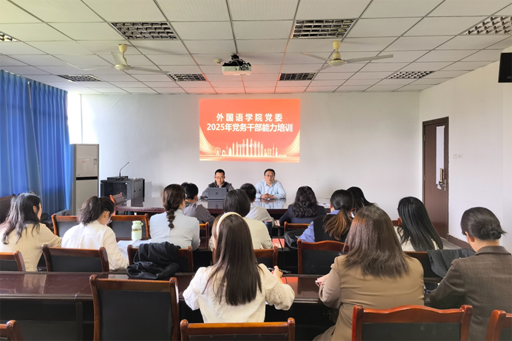 4月9日下午,外国语学院党委启动2025年党务干部能力培训,学校组织部副部长范剑平为学院全体党委委员、支委委员开展了首场培训。