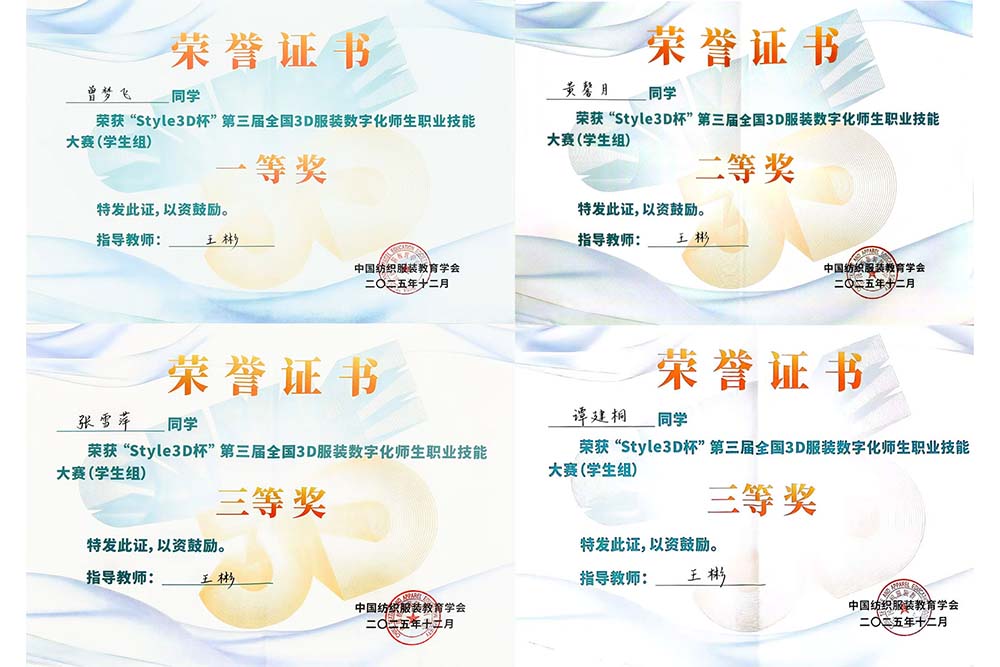 12月6日-12月7日,“Style3D杯”第三届全国3D服装数字化师生职业技能大赛于广东职业技术学院落下帷幕。taptap点点文化传播与设计学院曾梦飞、黄馨月、张雪萍、谭