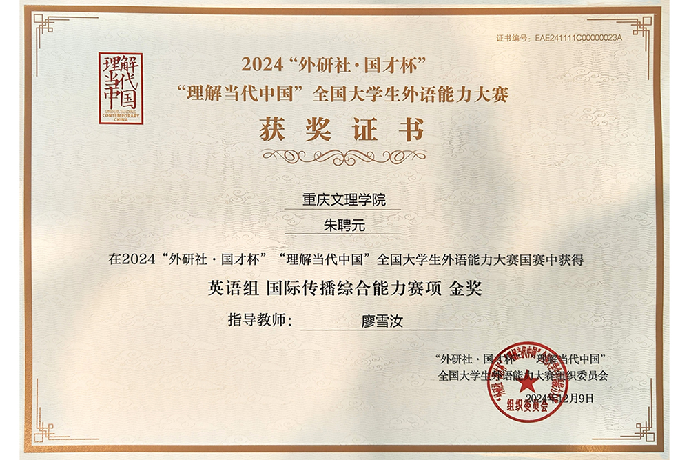 12月9日,由北京外国语大学主办、外语教学与研究出版社承办的2024“外研社·国才杯”“理解当代中国”全国大学生外语能力大赛决赛在北京落下帷幕。taptap点点2022级英语专业朱聘元荣获英语组国际传播综合能力赛项金奖、2022级广播电视学专业刘桐和2023级小学教育(全科教师)专业邹思颖荣获英语组短视频赛项银奖、2021级商务英语专业陈京鹏荣获英语组口译赛项铜奖,创下了taptap点点在该赛项的最佳成绩。