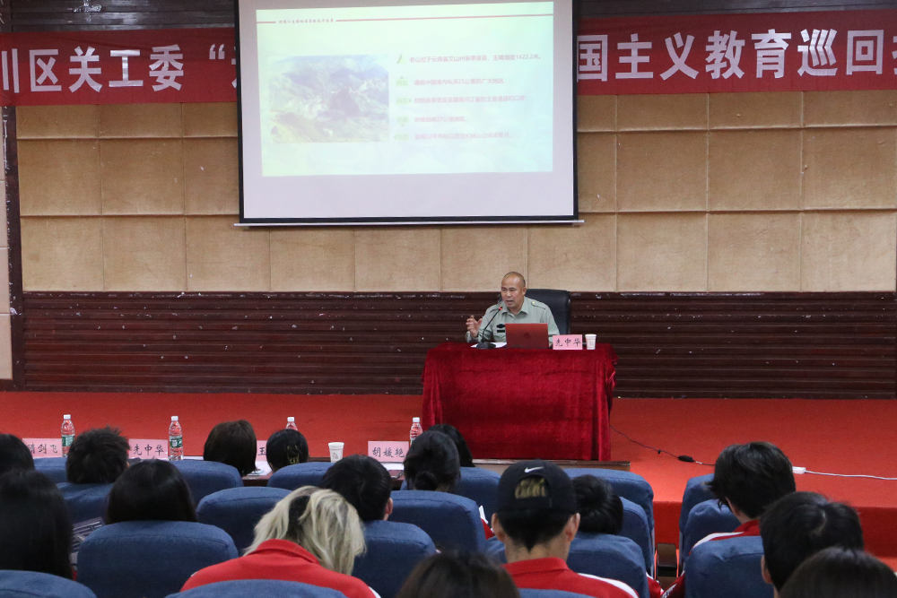4月17日下午,由永川区关工委主办,师范学院联合清澈蓝天、沐歌星湖学生社区特设党支部承办的“追寻红色记忆”爱国主义教育报告会在博文馆101举行。永川区关工委副主任(永川区政协原副主席)马玉平,永川区退役军人事务局二级调研员先中华应邀参加活动。