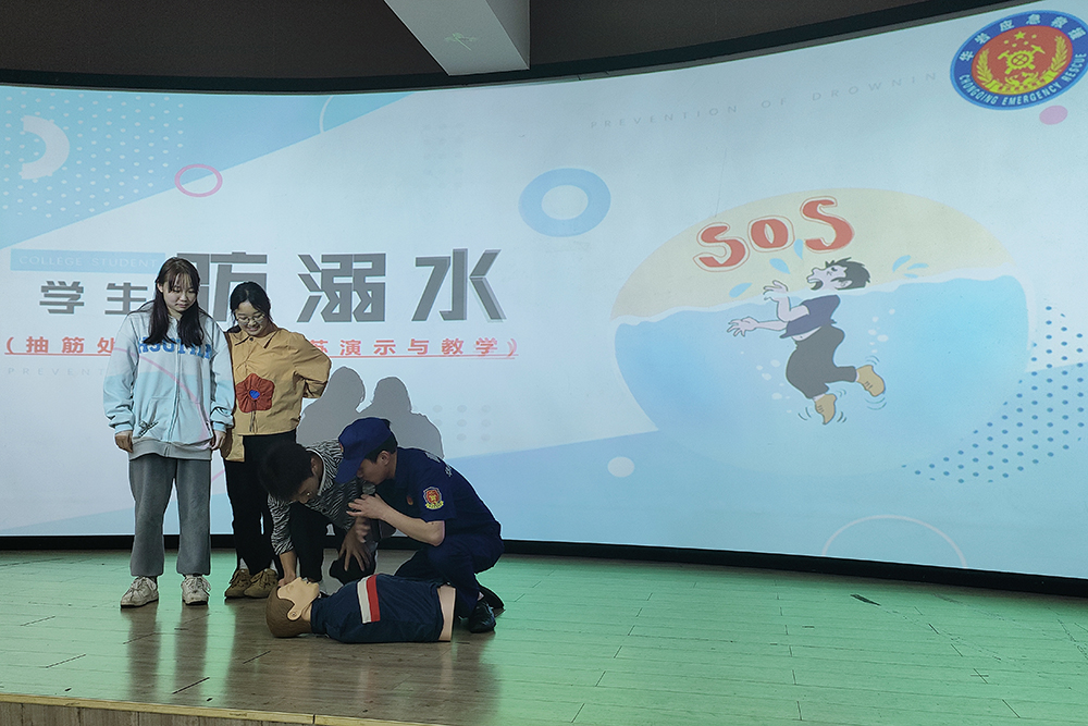 为进一步推动学生社区治理工作走深走实,深入实施学生社区治理五大行动,有效避免学生溺亡事故发生,更好地守护广大学生生命健康安全,4月24日下午,由星湖校区管委会联合经济管理学院与沐歌星湖学生社区特设党支部共同举办的大学生防溺水安全主题教育讲座在星湖校区第八阶梯教室举行。讲座邀请了经济管理学院2012级工商管理专业校友、永川区应急局华岩救援队队长、功能型党支部书记、国家电网公司英大人寿渝西片区经理胡银担任主讲嘉宾。讲座由星湖校区管委会主任赵锋主持,星湖校区部分教师及学生代表360余人聆听此次讲座。