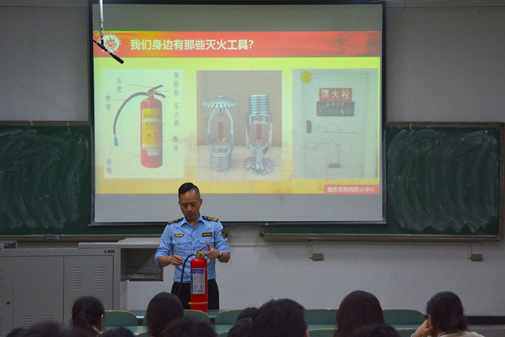 为落实消防安全有关要求,普及消防安全知识,提高师生的安全防范意识、防范技能和自救能力,4月24日下午,马克思主义学院专门邀请重庆市利民防火中心的教官焦兴来开展了消防安全教育培训,马克思主义学院全体教职工、清澈蓝天社区部分学生代表参加了培训。学院党委副书记、纪委书记、副院长李景国主持活动。