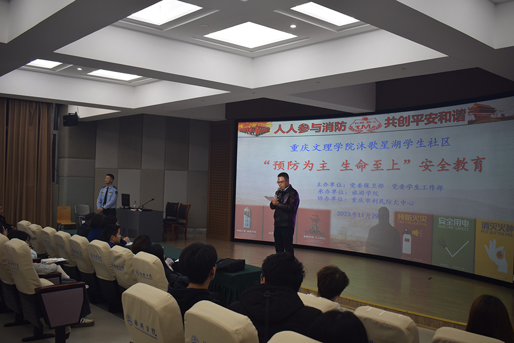 11月29日下午,沐歌星湖学生社区开展了以“预防为主 生命至上”为主题的安全教育活动,活动在星湖校区第八阶梯教室举行。沐歌星湖学生社区各楼长、层长、各学院班级班长、安全委员和寝室室长、宿舍宿管、安保等代表共计200余人参加。