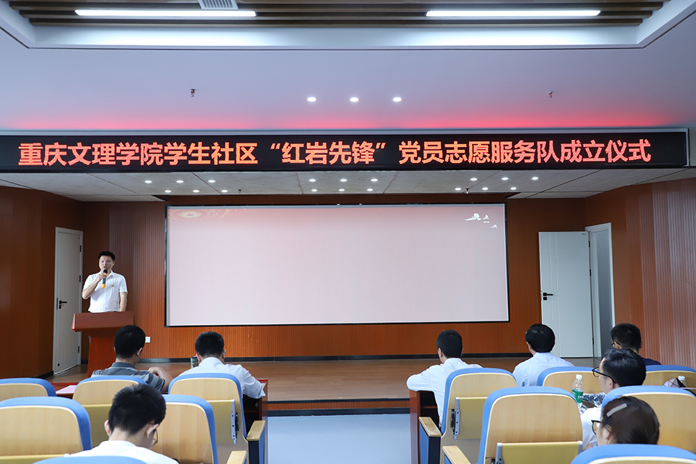 5月30日下午,学校在红河B区知行楼A601举行学生社区“红岩先锋”党员志愿服务队成立仪式。党委常委、党委组织部部长周洪亮,党委常委、党委学生工作部部长钱闾建,党委组织部、党委学生工作部相关负责人,沐歌星湖、清风揽月、清澈蓝天、书香观云学生社区特设党支部全体成员,各学生社区学生党员代表共计200余人参加仪式。