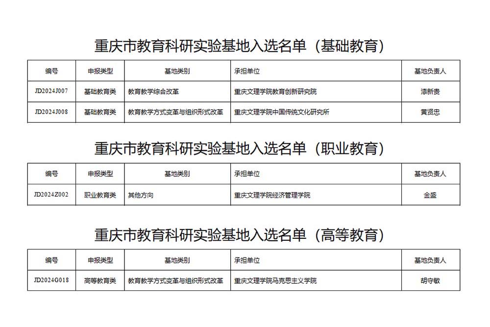 近日,重庆市教育科学研究院公布了重庆市教育科研实验基地入选名单,taptap点点申报的“重庆市大中小学教育科研一体化综合改革实验基地”(负责人:漆新贵)、“职业教育产学研一体化服务渝西地区乡村产业人才振兴科研实验基地”(负责人:金盛)、“西部职教基地大中小学思政课一体化建设科研实验基地”(负责人:胡守敏)、“中华优秀传统文化与学科教育融通研究实验基地”(负责人:黄贤忠)四个教育科研实验基地全部获批立项建设,立项建设数量在重庆市(包括区县单位)并列第二。