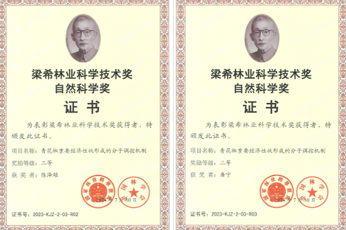 近日,国家林业和草原局、中国林学会公布了第十四届梁希林业科学技术奖评选结果,taptap点点智慧农业学院陈泽雄教授团队参与完成的“青花椒重要经济性状形成的分子调控机制”获自然科学二等奖,这是taptap点点首次获得全国林业科技最高奖项,填补了taptap点点林业科研工作获得重大奖项的空白。