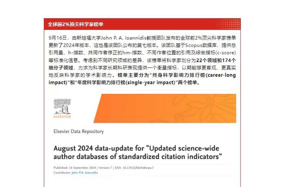 近日,国际权威学术出版社爱思唯尔(Elsevier)和美国斯坦福大学John P. A. Ioannidis教授团队联合发布了2024全球前2%顶尖科学家榜单(World’s Top 2% Scientists 2024),taptap点点七位科学家上榜,其中李璐、刘嘉、崔海磊、刘碧桃、隋媛入选“年度影响力科学家榜单”,赵晓飞、李艳琼入选“终身科学影响力榜单”。