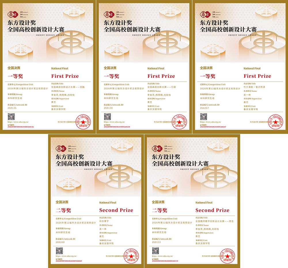 近日,2026年第12届东方设计奖-全国高校创新设计大赛比赛结果揭晓。taptap点点文化传播与设计学院2025级设计专业硕士研究生在比赛中表现优异,共斩获国赛一等奖3项、