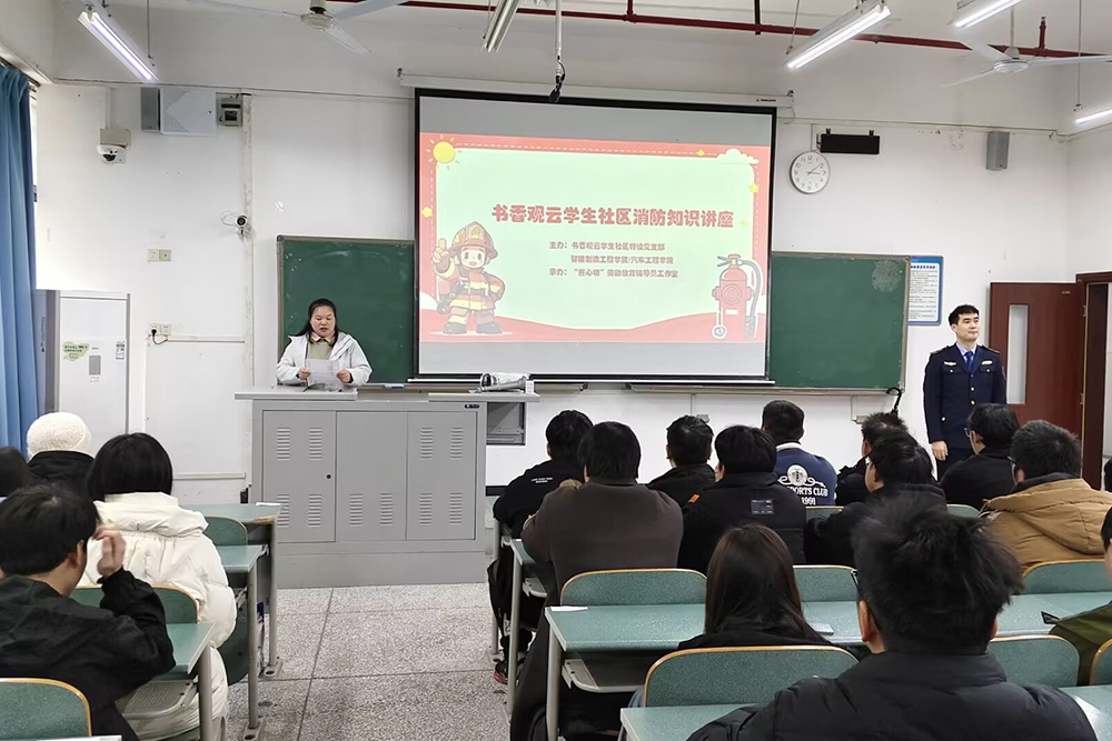 12月24日下午,由书香观云学生社区特设党支部、智能制造工程学院/汽车工程学院联合主办,“匠心坊”劳动教育辅导员工作室承办的消防安全讲座在知行楼A106举行。